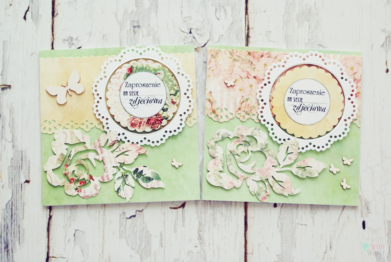 Uniwersalne zaproszenia na sesję fotograficzną. Delikatny wiosenny wzór w motyle i róże. Sesja zdjęciowa idealnie sprawdza się jako prezent dla bliskiej osoby.
